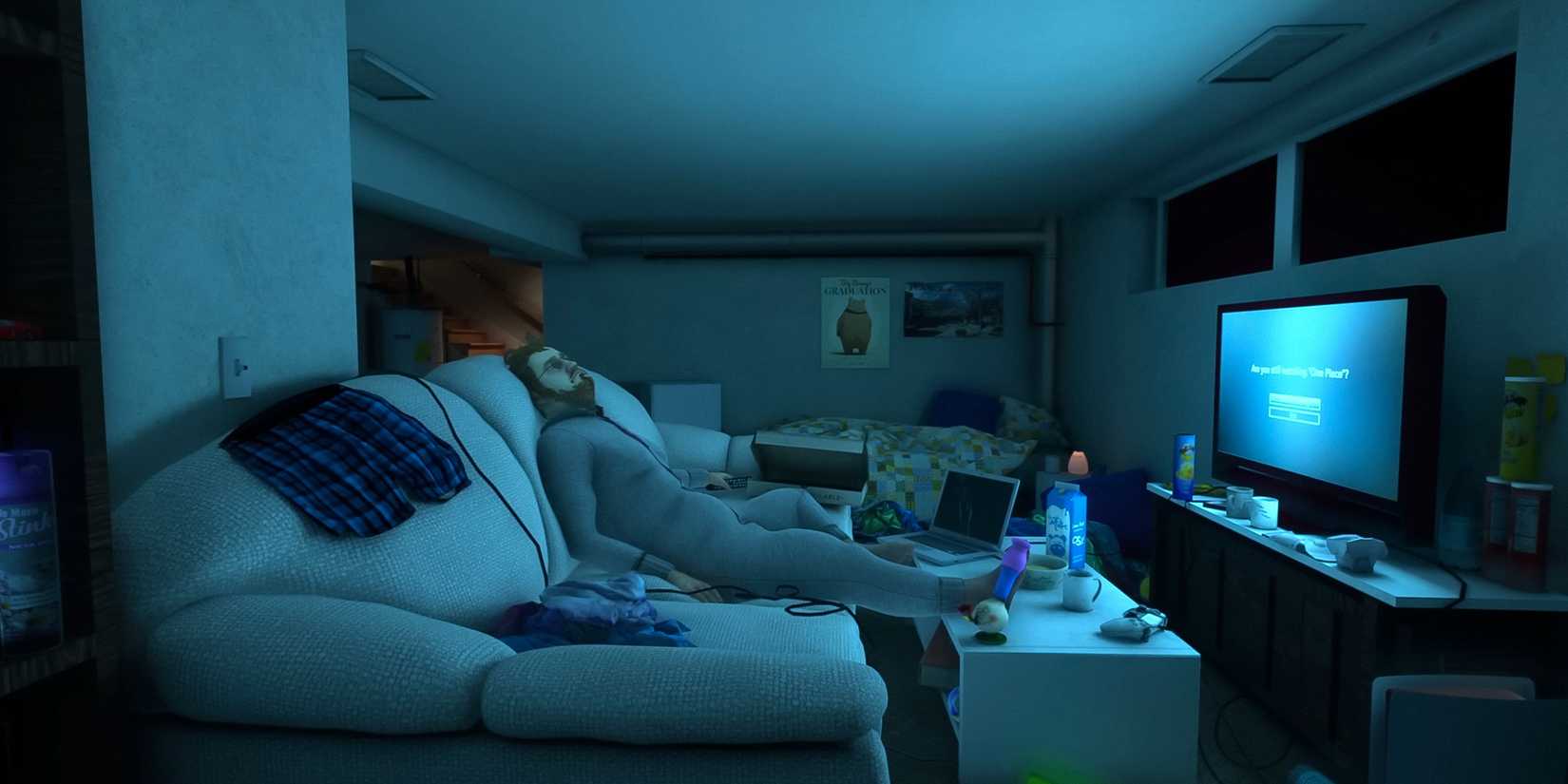 Baby Steps no solo ofrece una crítica narrativa: también lo hace desde el diseño de juego. Mientras que la mayoría de los videojuegos de acción convierten al jugador en una figura todopoderosa desde el primer minuto, aquí se lucha incluso para dar un paso sin caer al suelo.