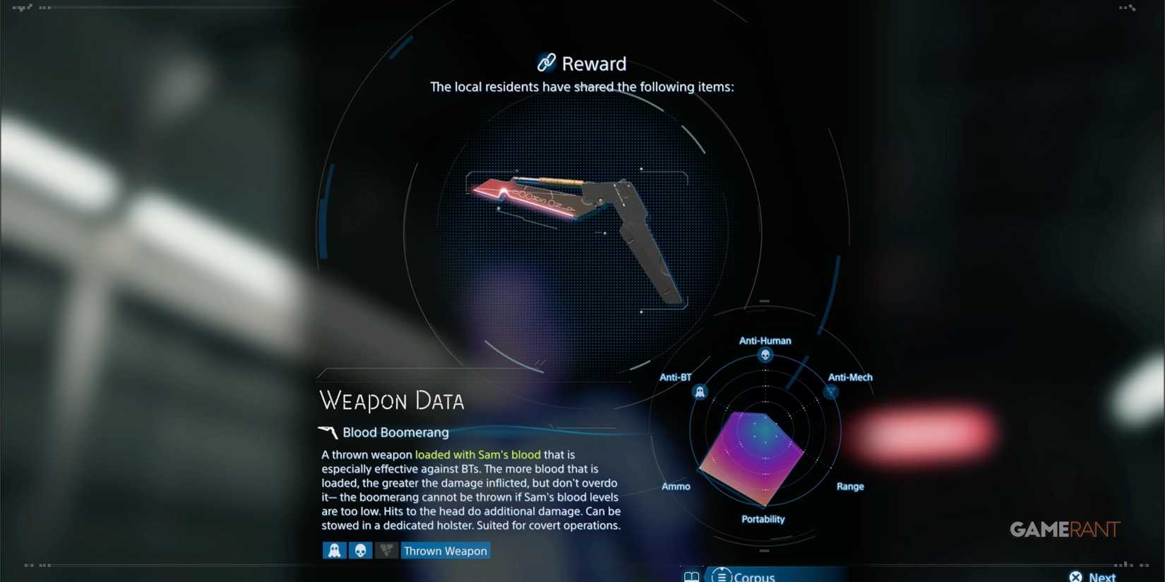 Este detalle agrega una capa de estrategia al combate, ya que te permite usar el entorno y tu equipamiento de forma más inteligente. Si combinas el uso del Bola Gun con el Bumerán de Sangre, podrás enfrentar encuentros con BTs de manera no letal y obtener recompensas únicas.