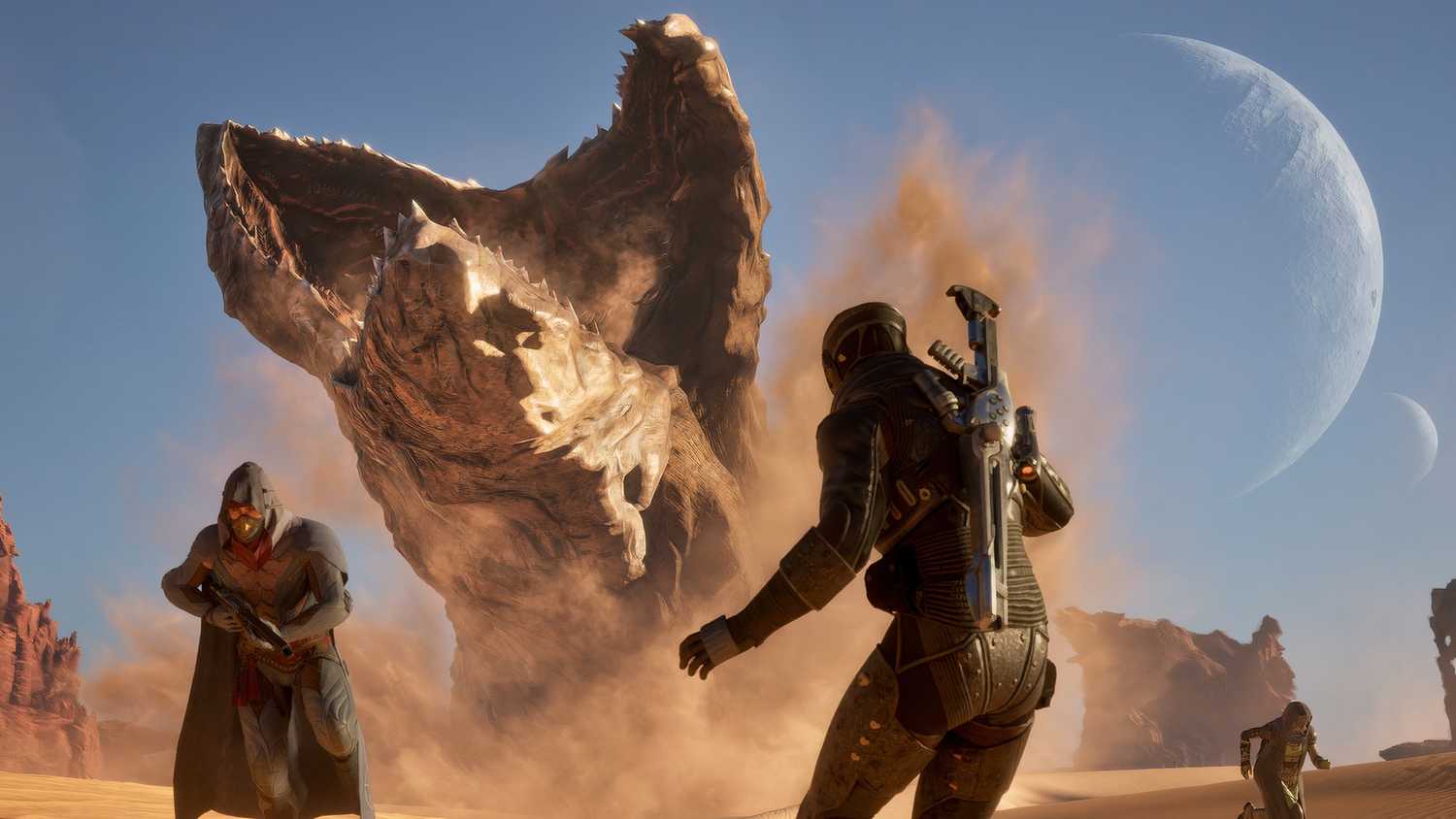 Explorar este mundo desértico es una experiencia visual y sonora que cautiva. Los efectos climáticos como las tormentas de Coriolis, y las imponentes apariciones de los gusanos de arena, no solo aportan espectacularidad visual, sino que afectan directamente la jugabilidad, haciendo que cada incursión fuera de tu base se sienta como una misión de alto riesgo.