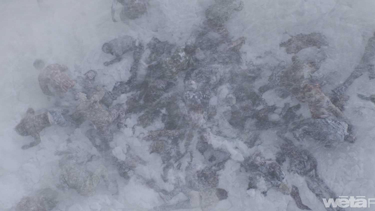 Además, se tuvieron en cuenta las propiedades reales de la nieve: su textura cambia con la temperatura, y el equipo recibió dirección de Dennis Yoo sobre cómo lograr esa apariencia "ni demasiado arenosa, ni demasiado pulverulenta". El resultado fue una escena que luce ultra realista, casi indistinguible de una grabación con efectos físicos.
