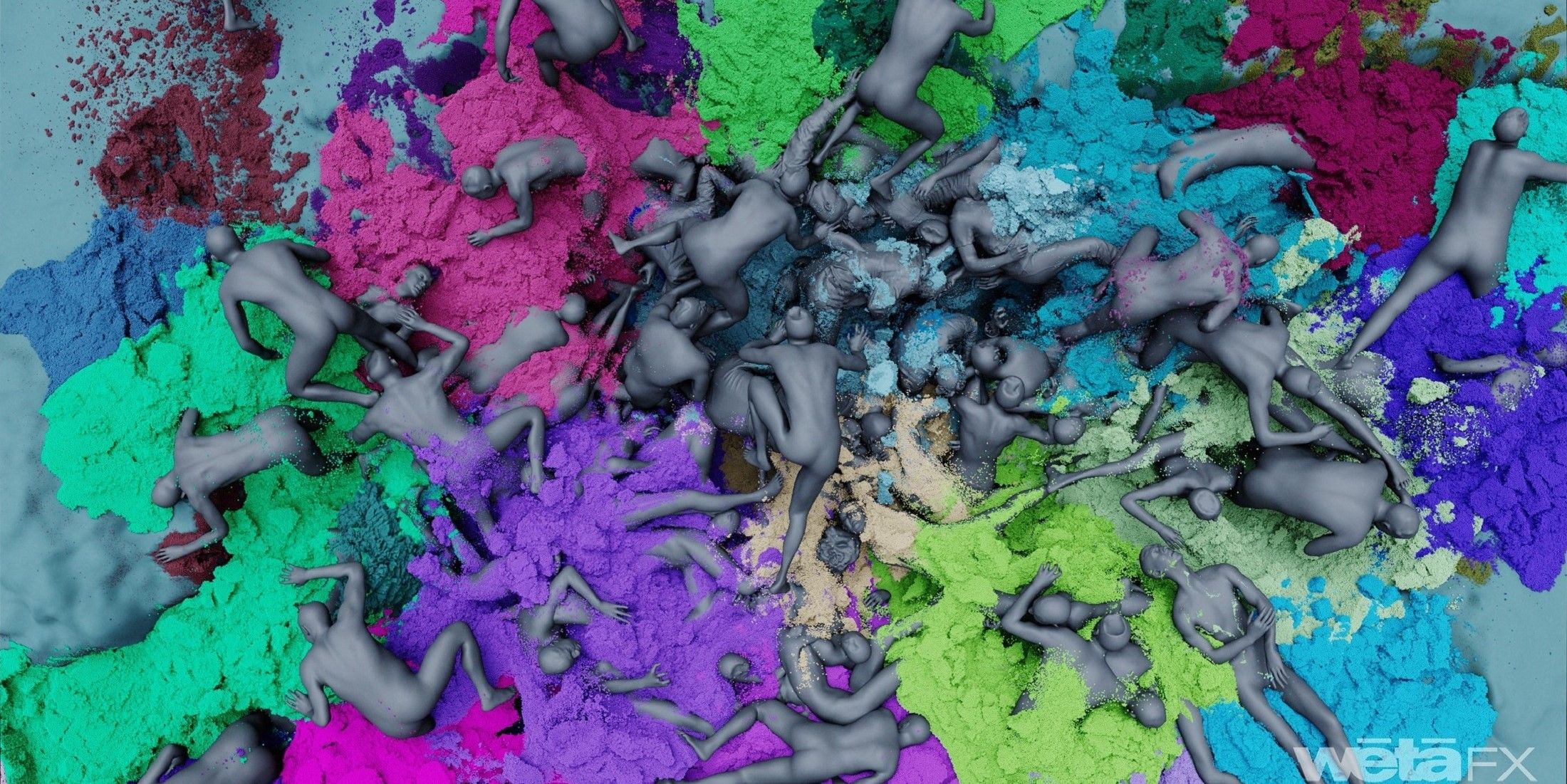 La verdadera hazaña fue animar la interacción masiva: no bastaba con hacer correr a 1.000 modelos, sino que debían reaccionar unos con otros —tropezando, empujándose, cayendo— para generar una horda auténtica. Además, hubo que añadir cuerpos en el suelo, incendios y movimientos orgánicos. El reto fue crear simulaciones de fuerza, colisión y variaciones de ritmo que lograsen una coreografía grotesca pero creíble, sin repetición ni rigidez.