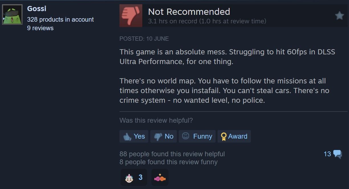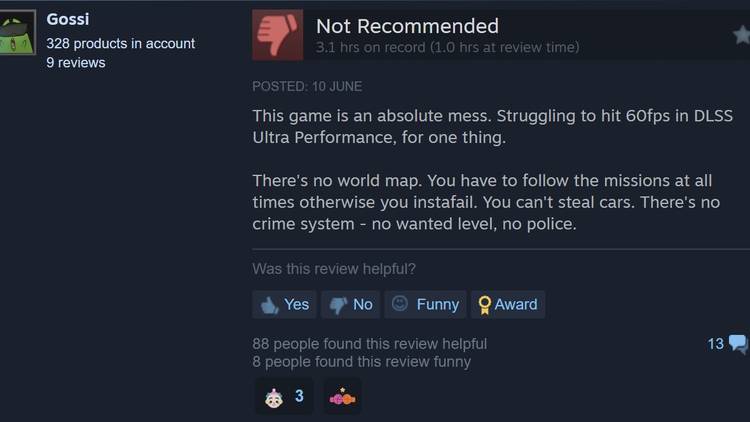 Los usuarios de Steam han sido claros en sus opiniones: MindsEye está lleno de errores. Desde cuelgues aleatorios hasta animaciones defectuosas, pasando por fallos de IA y menús que se bloquean, la experiencia jugable ha sido descrita como frustrante y poco cuidada. Aún peor, muchos jugadores afirman que incluso con equipos de gama alta, el rendimiento es inconsistente, con caídas de frames y tiempos de carga excesivos.