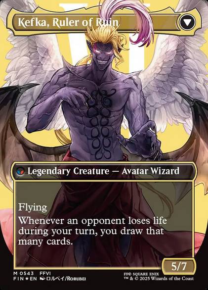 En mesas de poder más bajo, Kefka también puede funcionar con cartas como Waste Not, generando tokens de zombie cada vez que un oponente descarta una carta. Si se combina con efectos de "wheel" como Wheel of Fortune o Windfall, se puede vaciar la mano de todos y llenar el campo de criaturas, todo mientras se mantiene ventaja de cartas.
