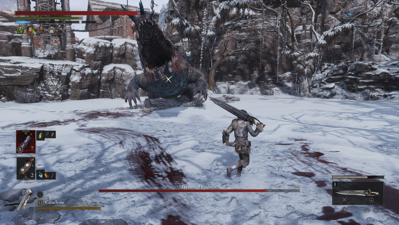 El jefe de esta primera sección, el "Depredador Tiránico", es un cocodrilo gigante con un arsenal de ataques salvajes: embestidas, mordidas y coletazos que obligan a dominar el parry o sufrir consecuencias catastróficas. Este combate, además de espectacular, demuestra que el DLC está diseñado para jugadores veteranos con experiencia en el título original.